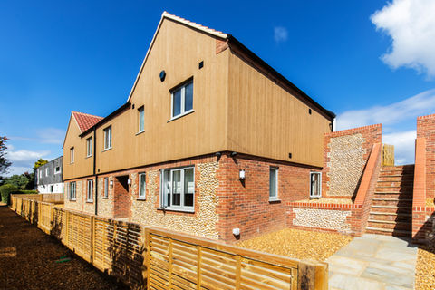 ACS designed a contemporary aesthetic 'beachside' with prominent double glazed gables finished in striking white render creating a memorable silhouette in the built landscape whilst the 'roadside' would be understated in design and traditional materials featuring Norfolk red brick, flint and pantiles.